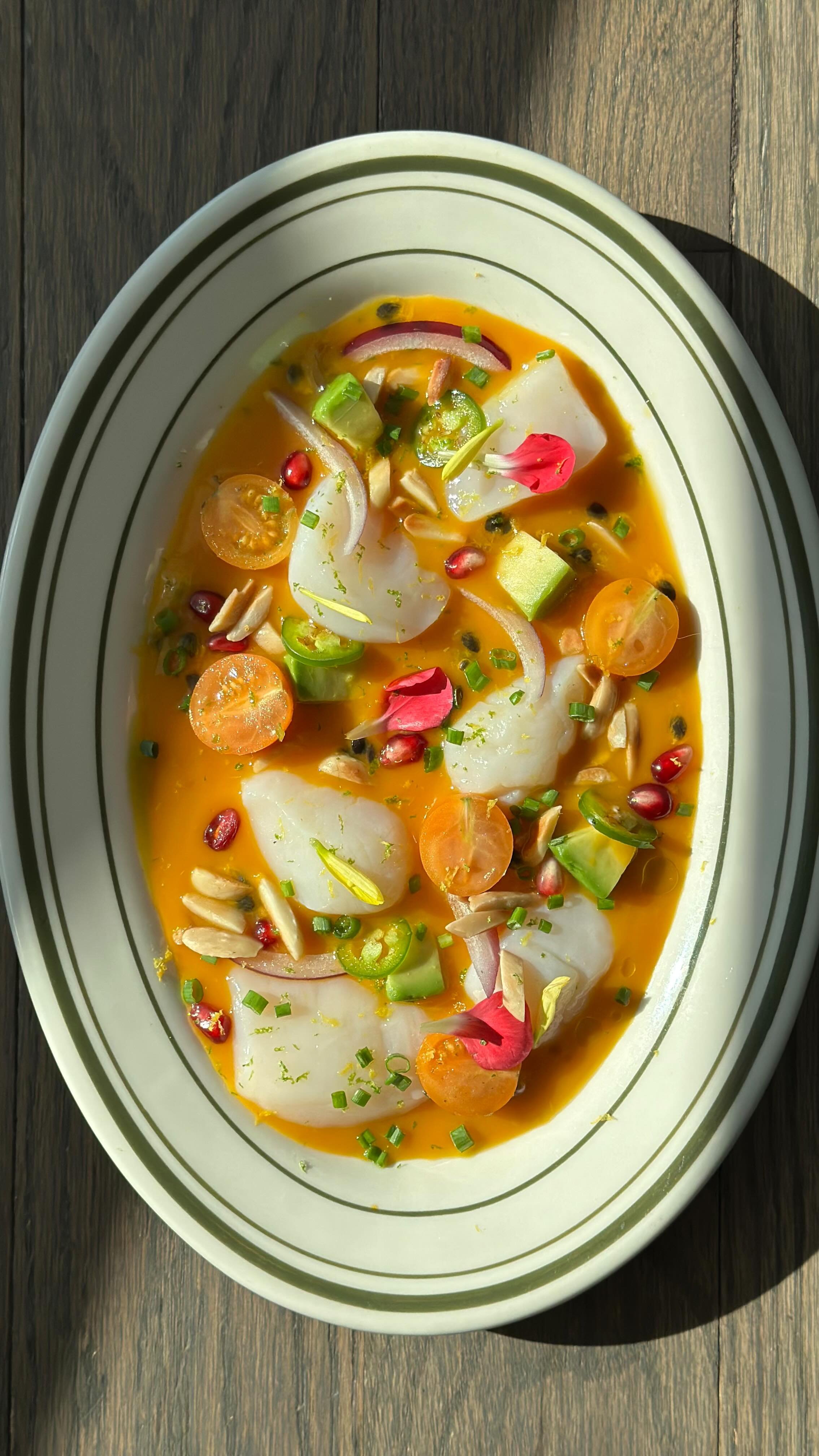 Signature stir-fried jumbo lump crab meat w/ scallions, peas & celery, basils, topped w/ house curry chili blend, oozy fried egg & ikura